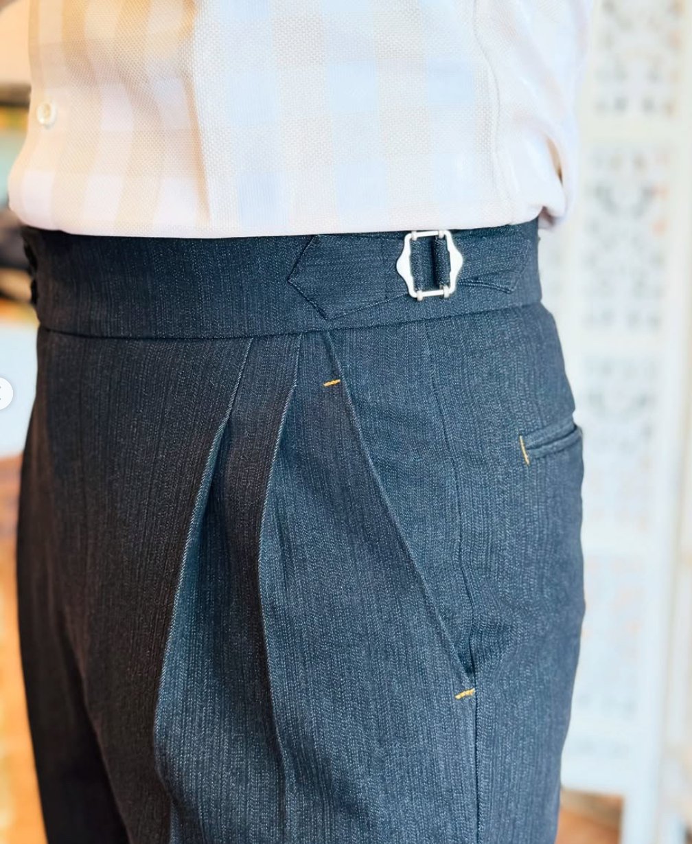 Expertly tailored with an Italian silhouette, these denim trousers combine classic craftsmanship with contemporary style. Featuring a straight freefall fit and premium denim fabric, they offer both comfort and sophistication. Perfect for smart-casual occasions or elevated everyday wear, these trousers add a refined, modern edge to any wardrobe. Can be customized in differwnt color variants.