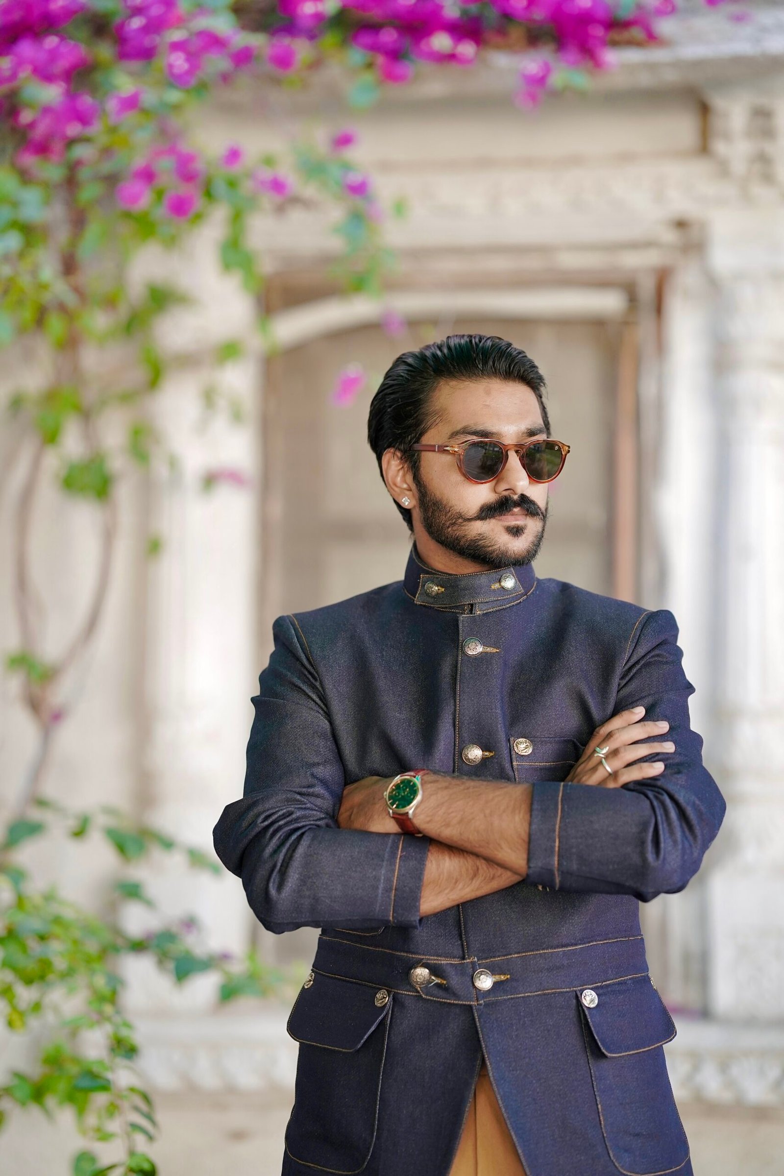 A contemporary denim-inspired designer bandhgala that blends traditional tailoring with modern casual aesthetics. Crafted with attention to detail, it features a structured silhouette and subtle design accents, offering a stylish, versatile statement piece perfect for both formal and smart-casual occasions.