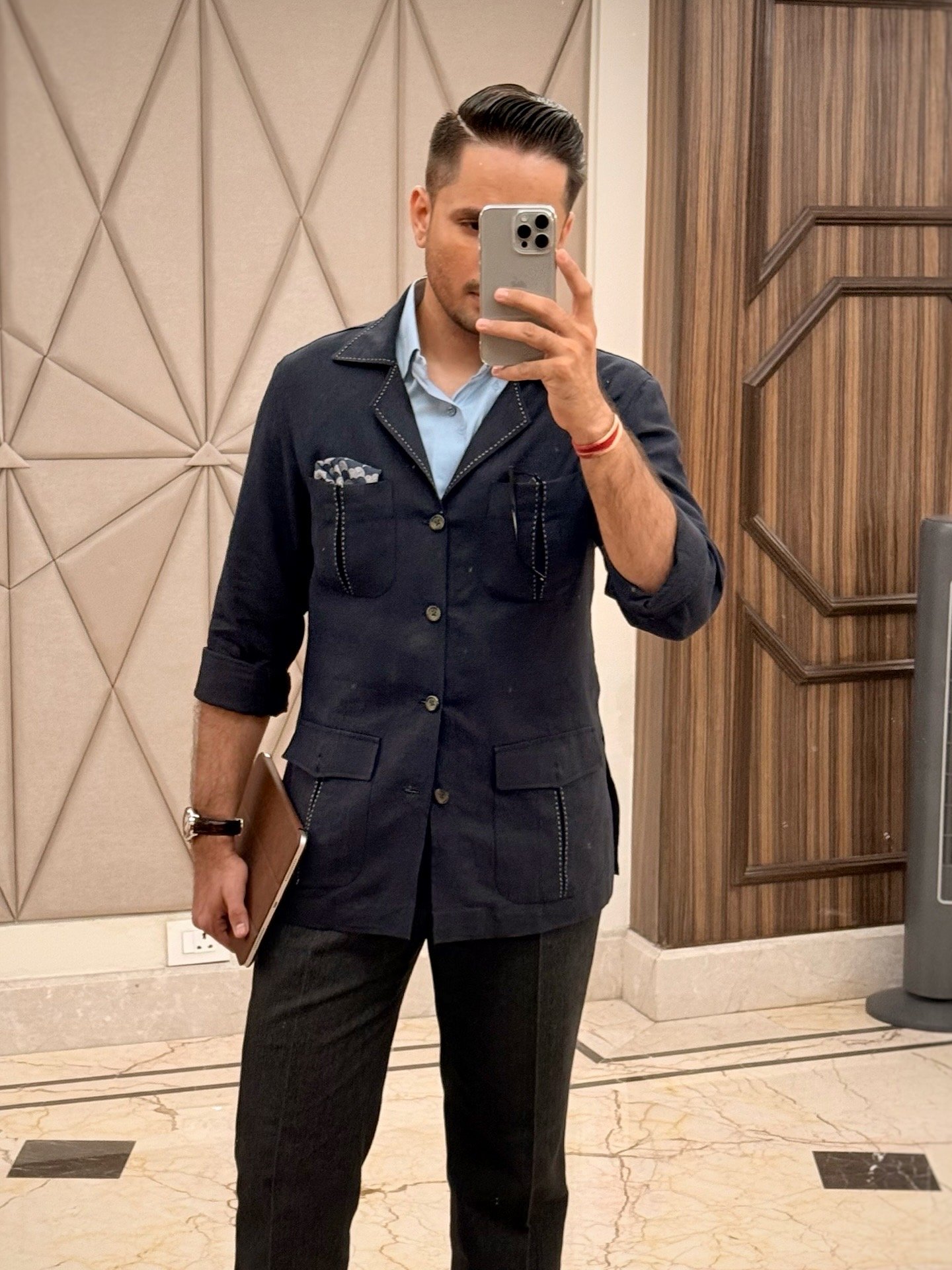Rooted in heritage and crafted for modern ease — The Midnight Hunter is a linen navy blue Hunting shirt  that balances function with timeless style. Designed with four pockets featuring classic heritage cuts, it carries the spirit of old-world utility reimagined for today. The subtle hand overstitches trace every edge with quiet craftsmanship, giving it a refined yet lived-in charm — effortless, versatile, and distinctly gentlemanly.