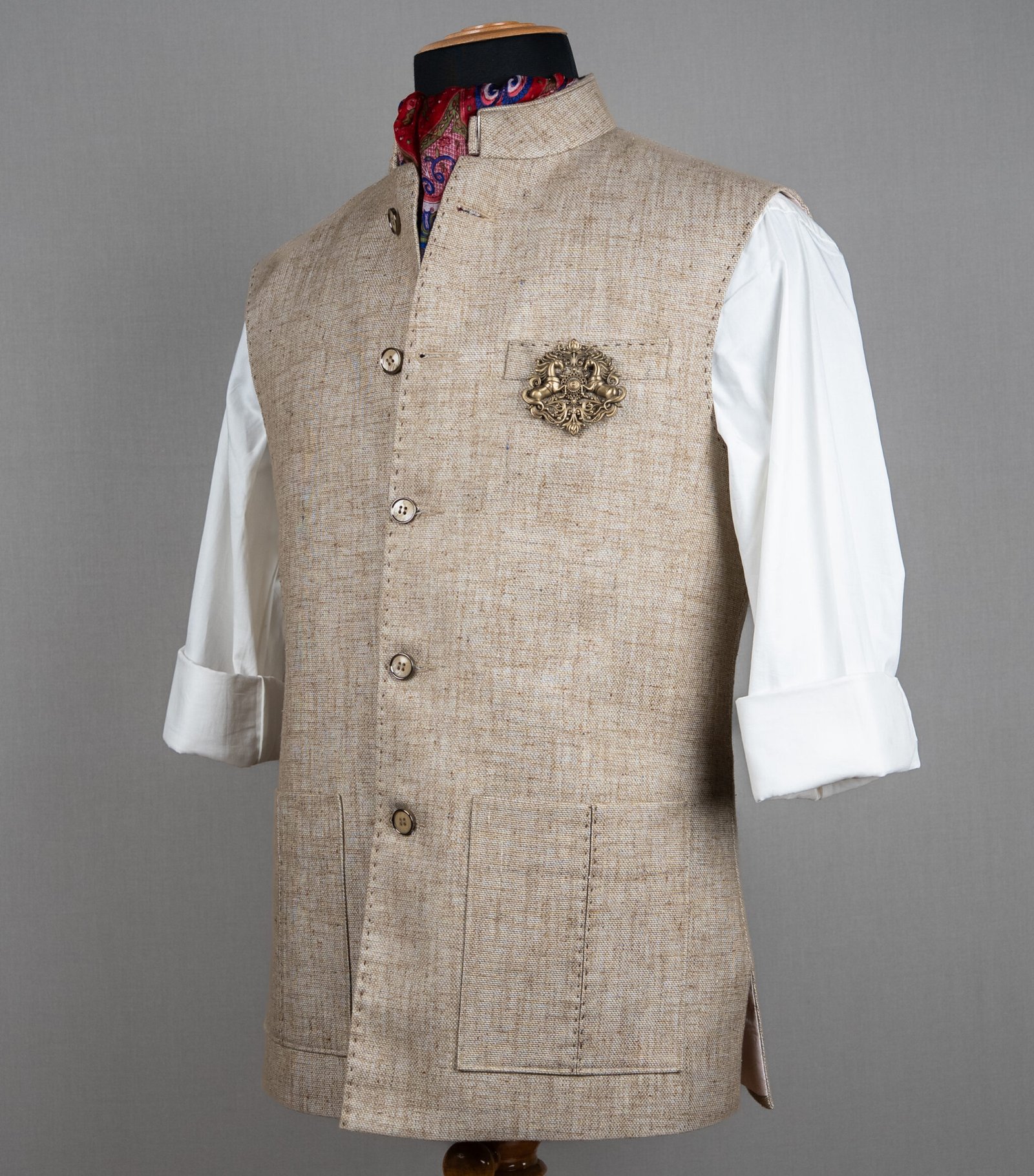 Ideal for casual outings, office wear, or weekend relaxation, this Khadi Beige Half Jacket is a must-have staple in your wardrobe.