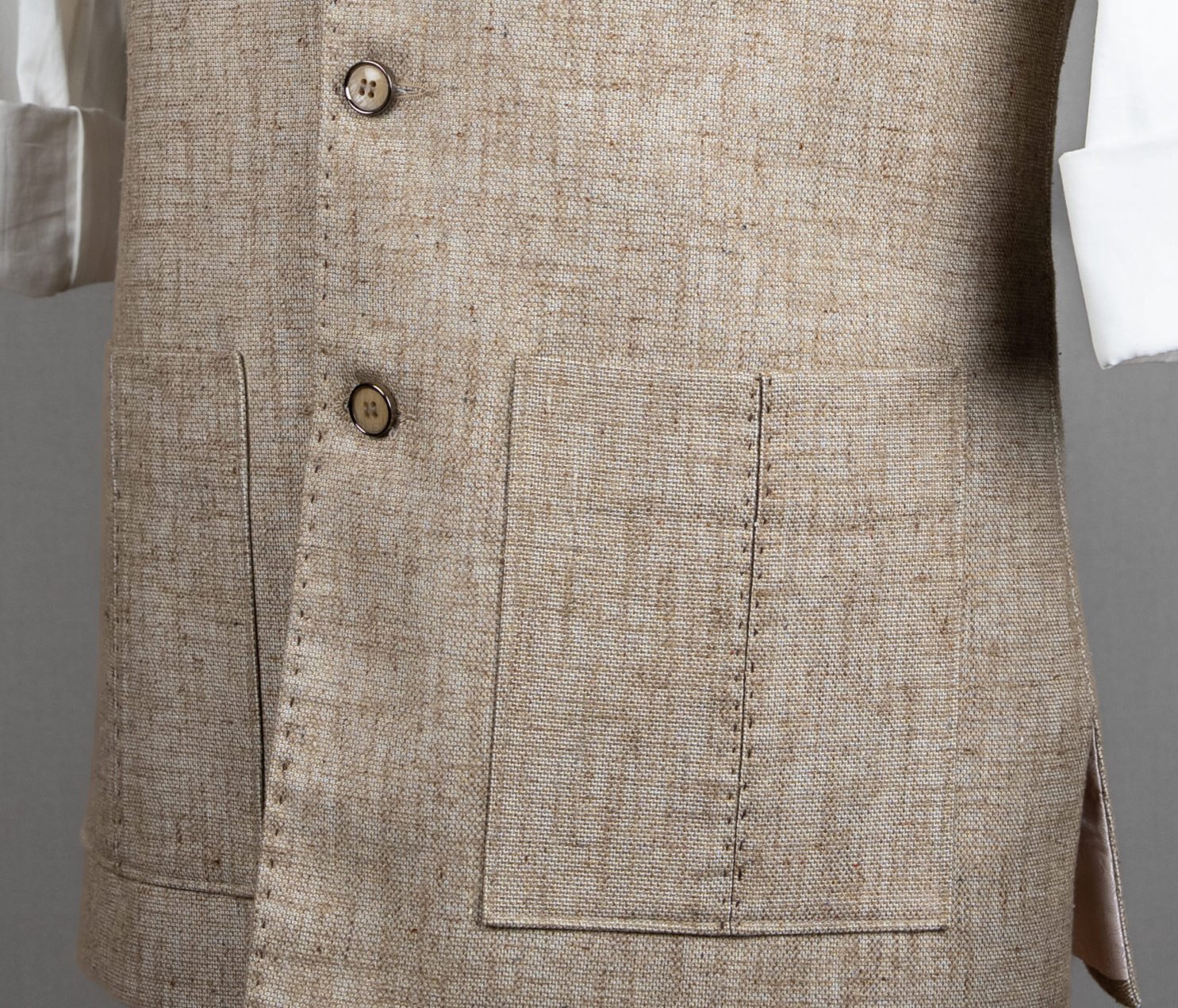 Elevate your wardrobe with this effortlessly stylish Khadi Beige Half Jacket, crafted from premium, breathable khadi fabric for all-day comfort. Designed with clean lines and a modern cut, this jacket features functional box patch pockets, adding a touch of utility while enhancing its minimalist aesthetic. Whether you’re layering it over a casual outfit or using it to dress up a more formal look, its versatile beige tone pairs seamlessly with any ensemble. Perfect for those who value timeless style with a contemporary twist.